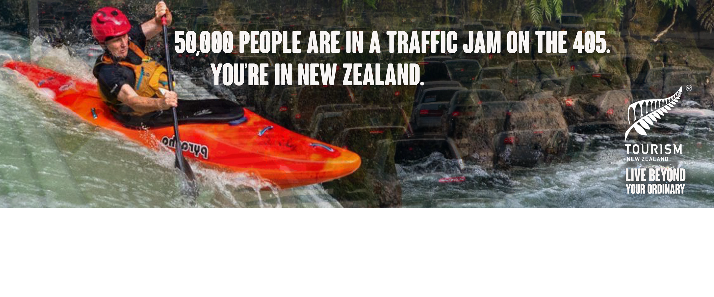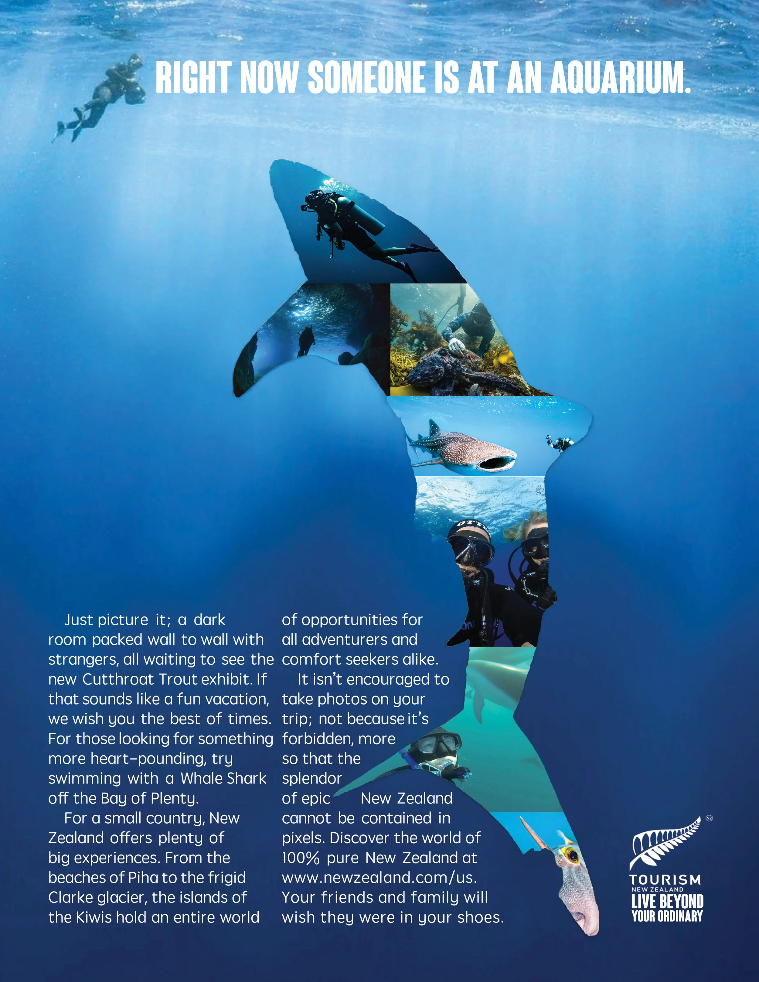 This ad targets adults searching for vacation spots in travel magazines, bringing them face to face with the awe of NZ.